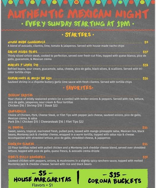 Bring your friends and family over to enjoy our happy hour specials. Happy Hour is 4:30pm - 6:30pm weeknights... 1:00pm - 3:00pm Saturdays... 6:00pm - 8:00pm Sundays.