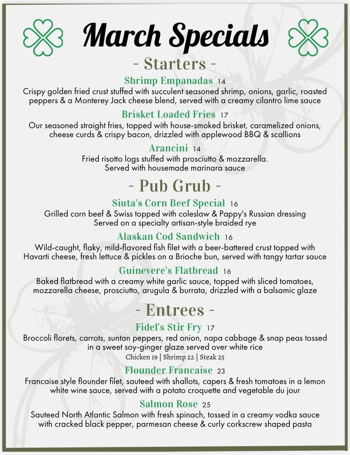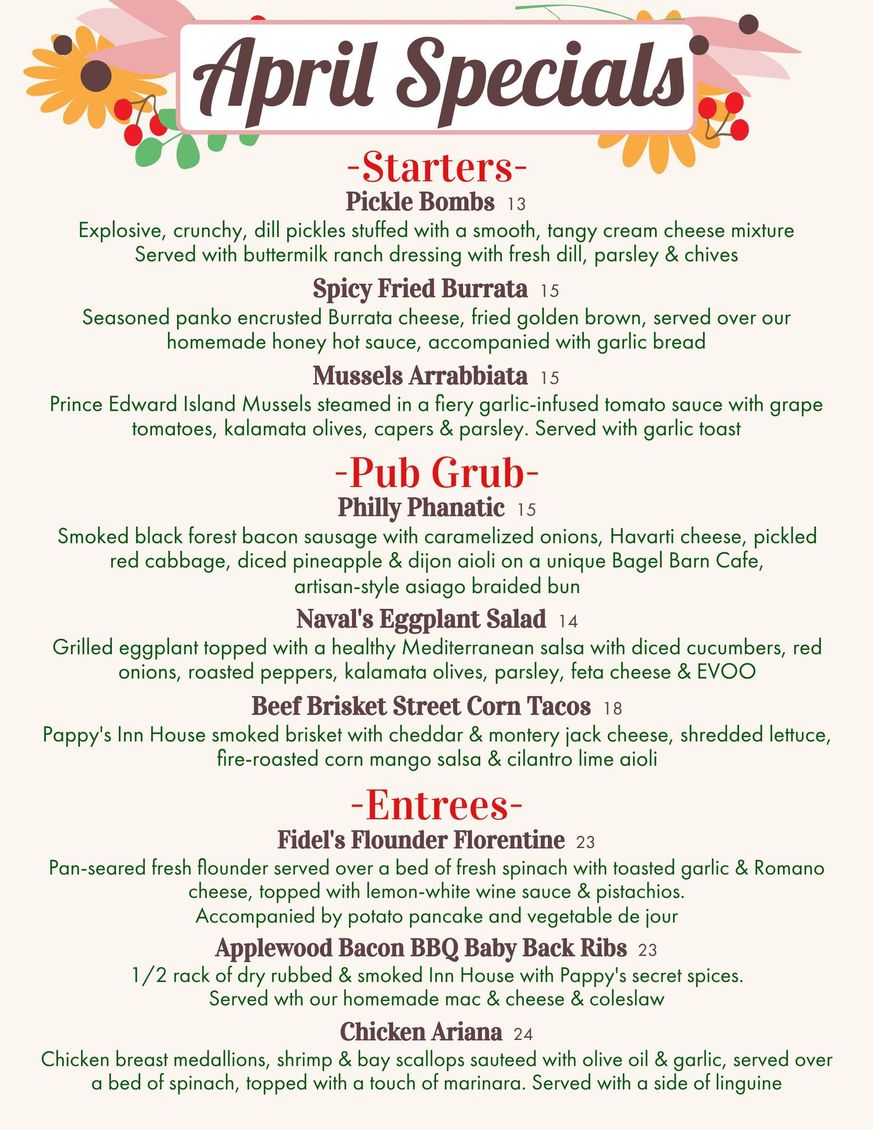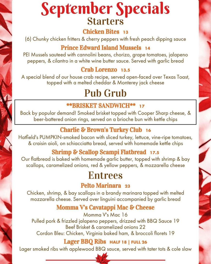 Check out the menu below to see some fantastic options in appetizers, pub plates, pizza, and burgers. Don't miss our signature breaded mozzarella — it's our take on the mozzarella stick, and it's homemade! Our cheese steak egg rolls are outstanding, and our beef sandwich gets rave reviews. Be sure to ask about the chef's specials! We even have a menu just for the kids!
